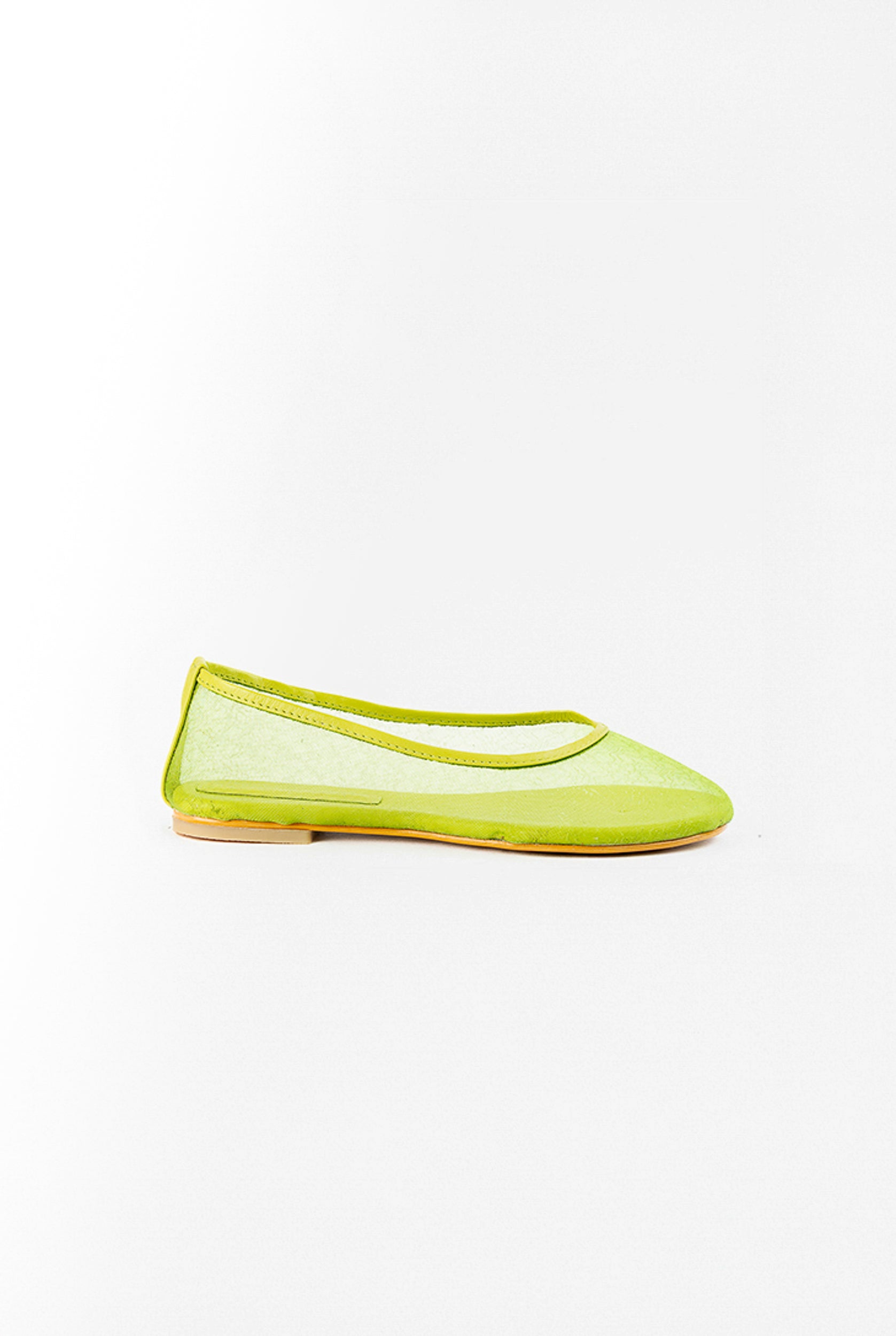 Simple, lujosa y discreta, nuestra balerina en malla transparente, con nuestra huella Piana, una huella única y exclusiva de la marca, contorneada con cuero bovino suave, plantilla extra confort minimalista.