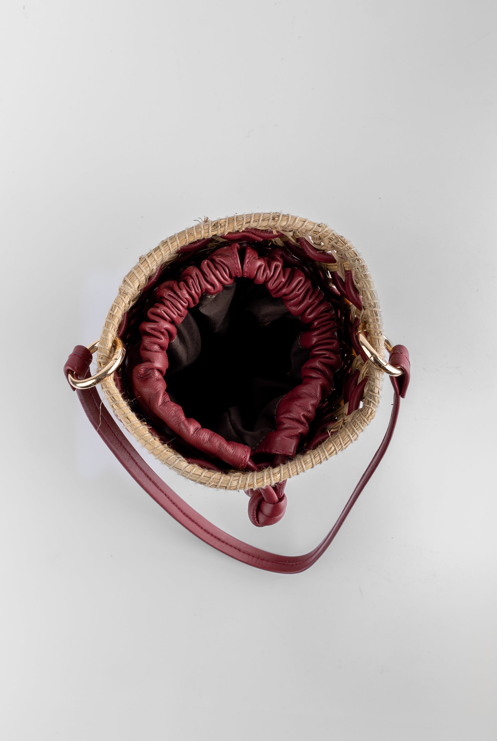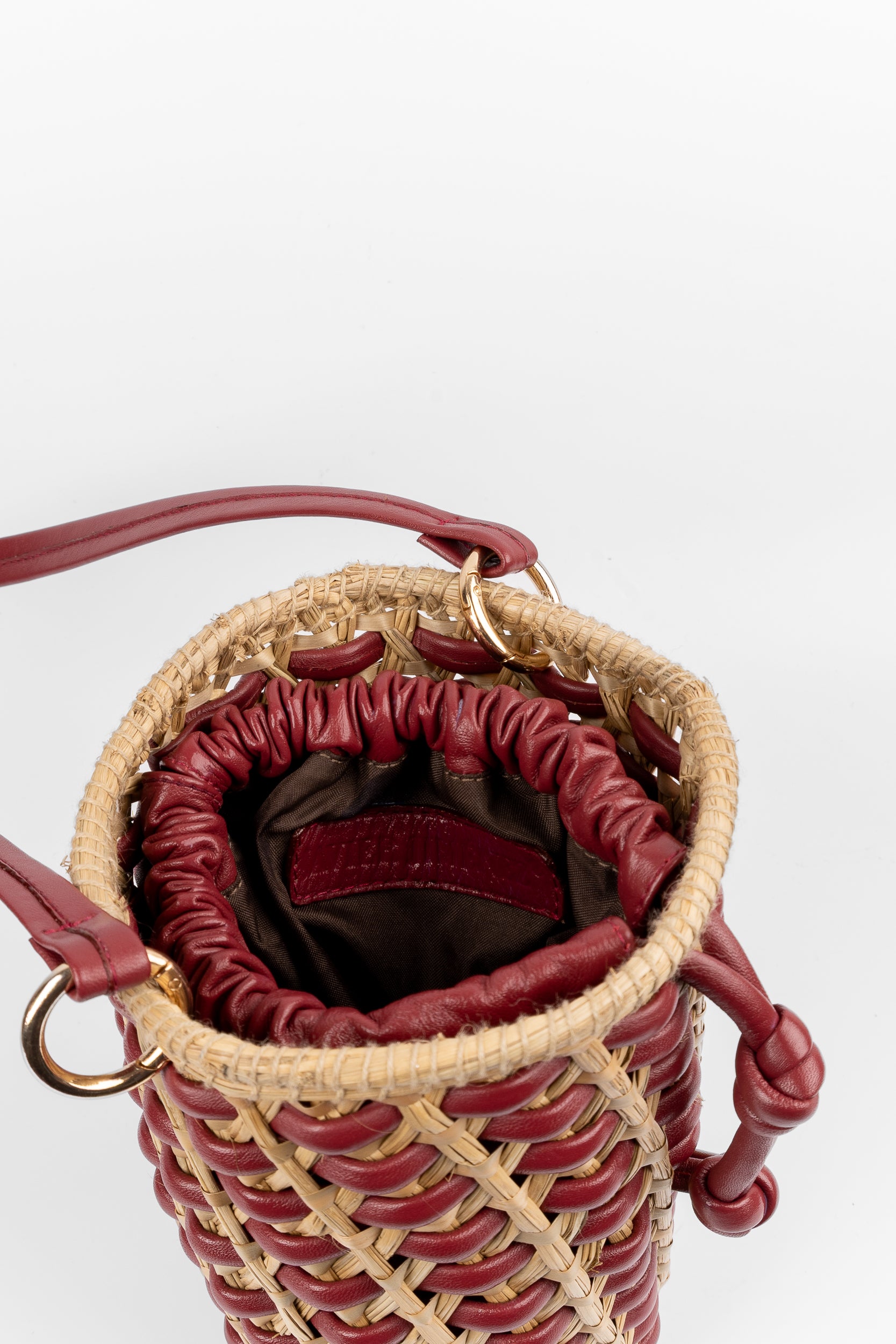 Elaborado completamente a mano, con una tula interna contramarcada y anudada en tono burdeo. Cada fibra y cada puntada cuentan la historia de dedicación, paciencia y precisión que define su esencia.