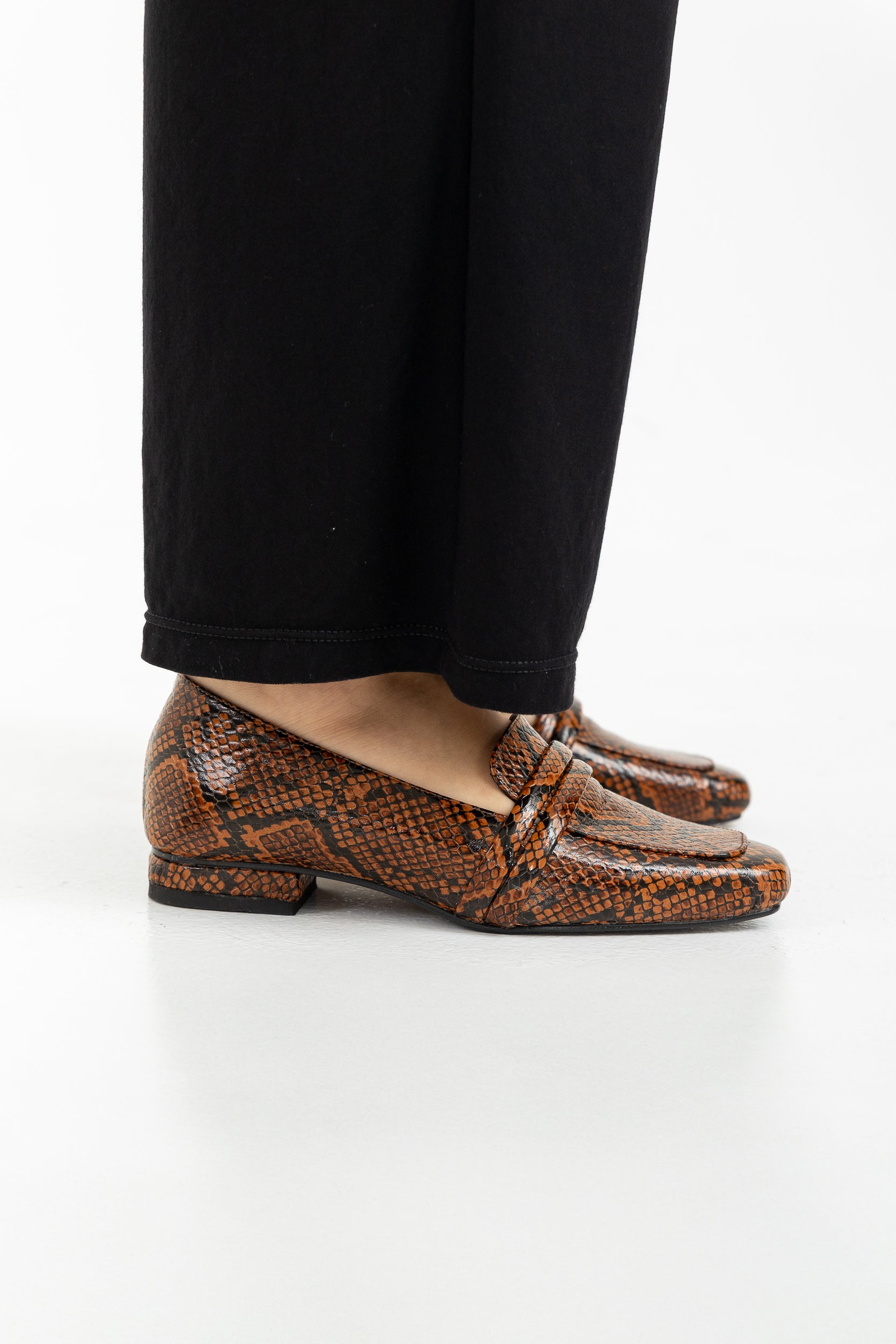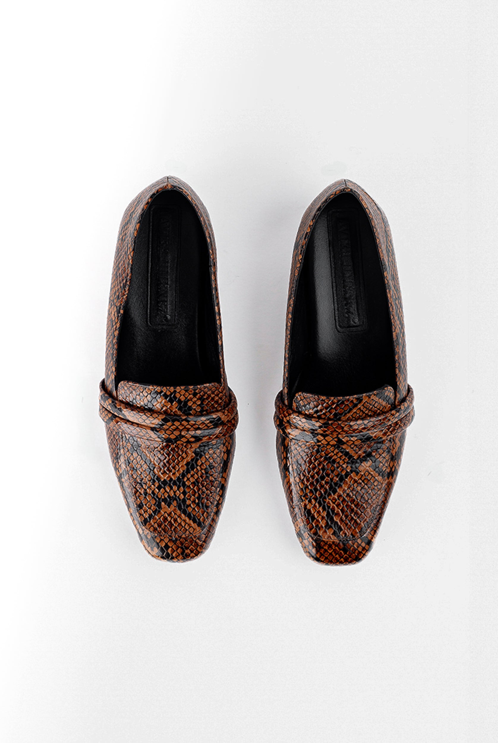 Mocasín simple con altura 20 mm, tacón forrado en cuero y tapa ligera. Abullonado simple en doble capellada slim. Suela contra marcada