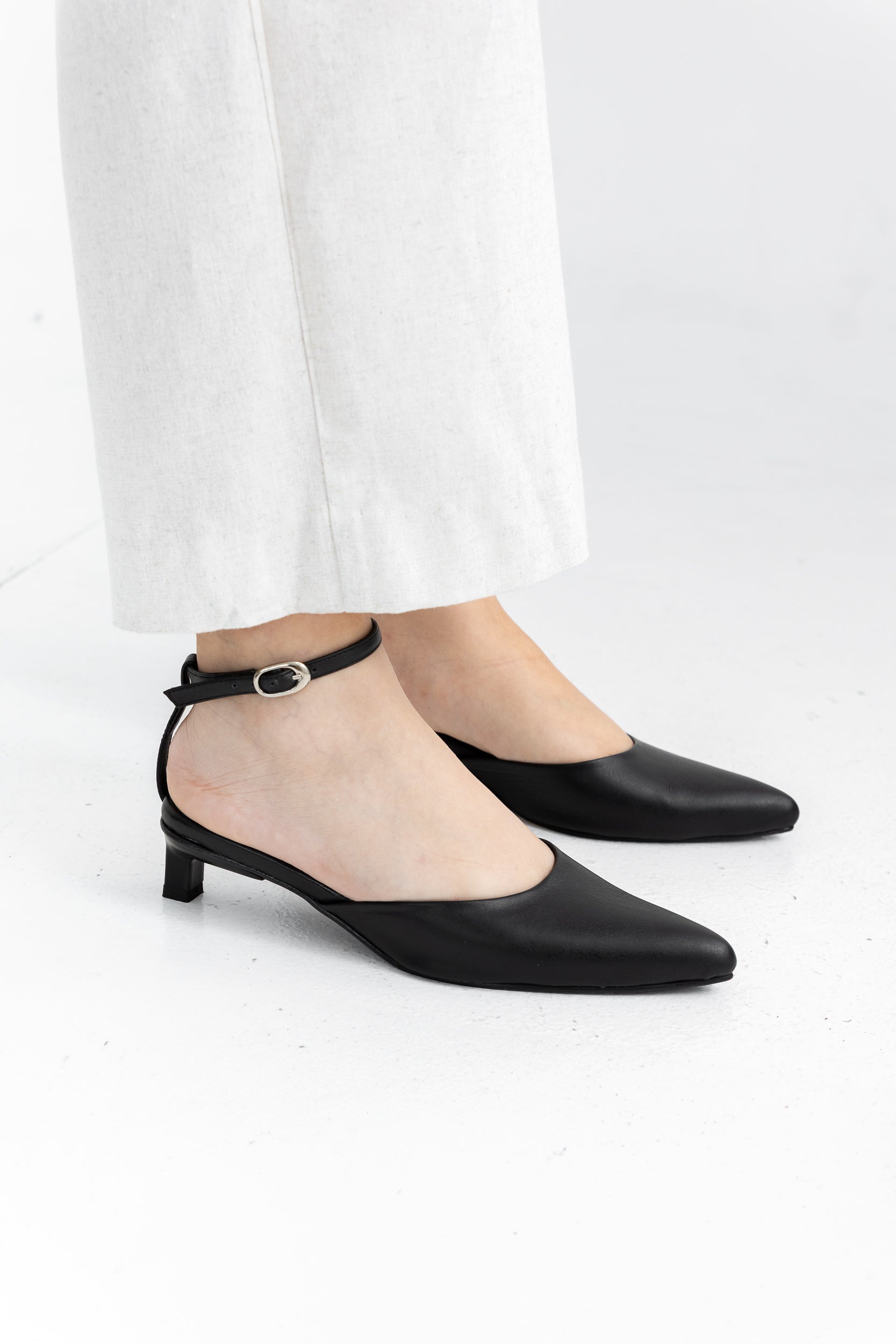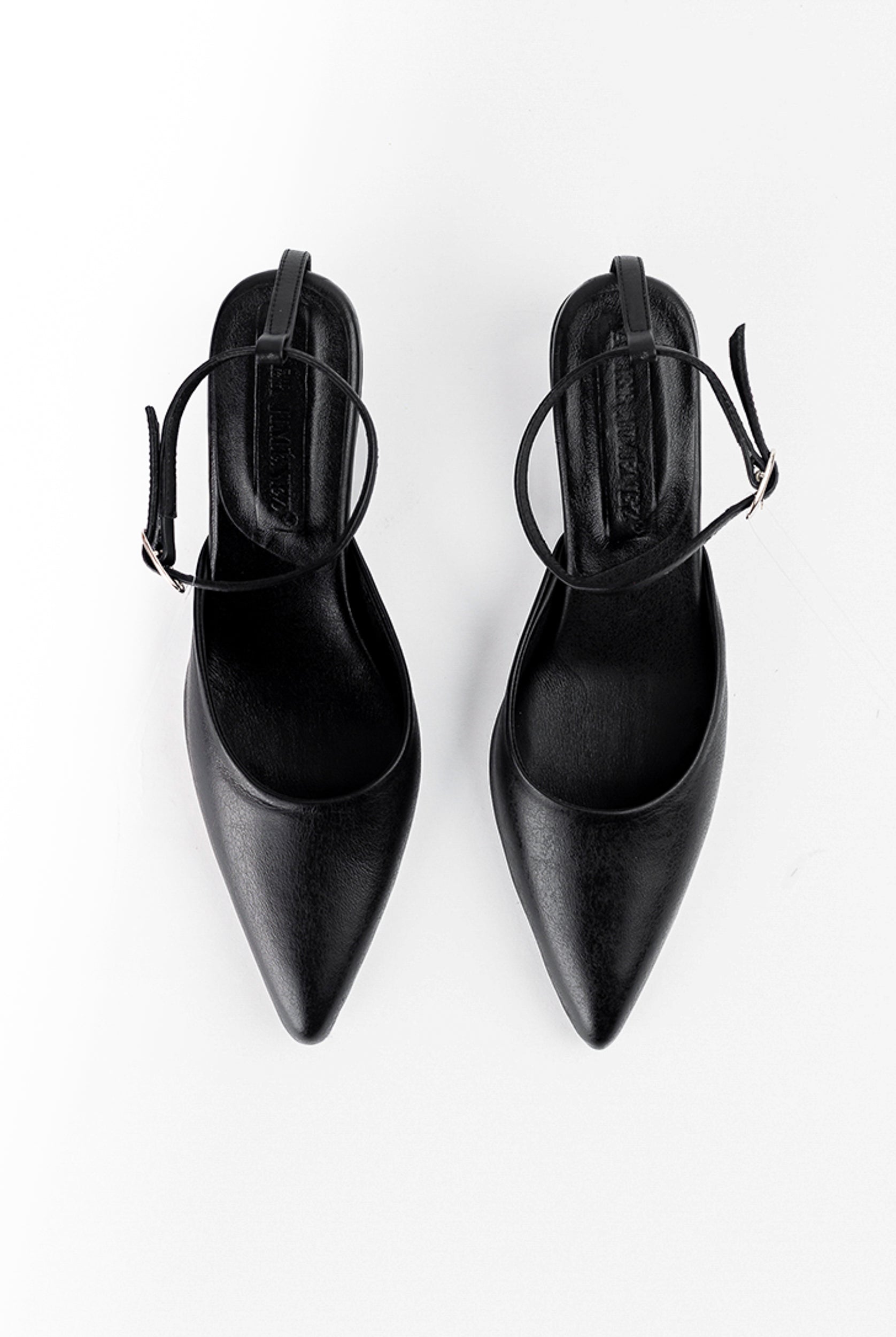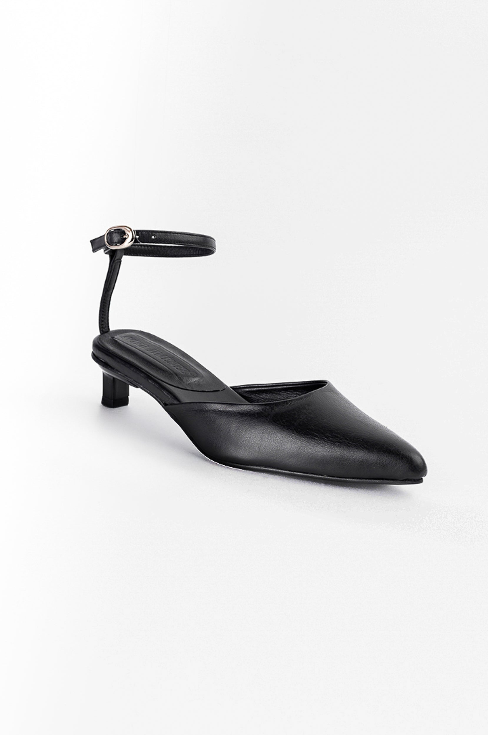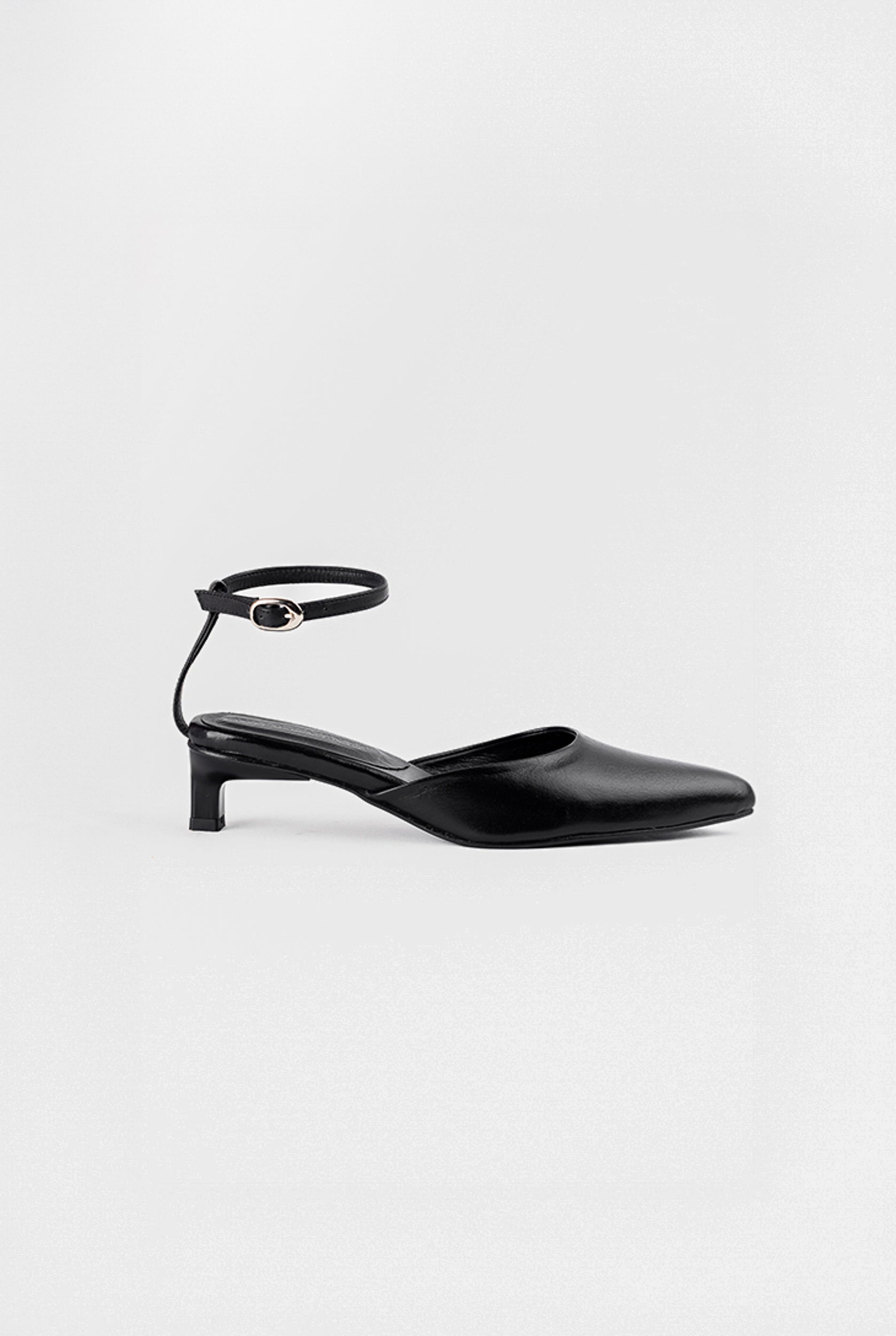 Tacón puntiagudo en altura de 35 milímetros, huella Santa Catalina, pulsera ajustable con hebilla