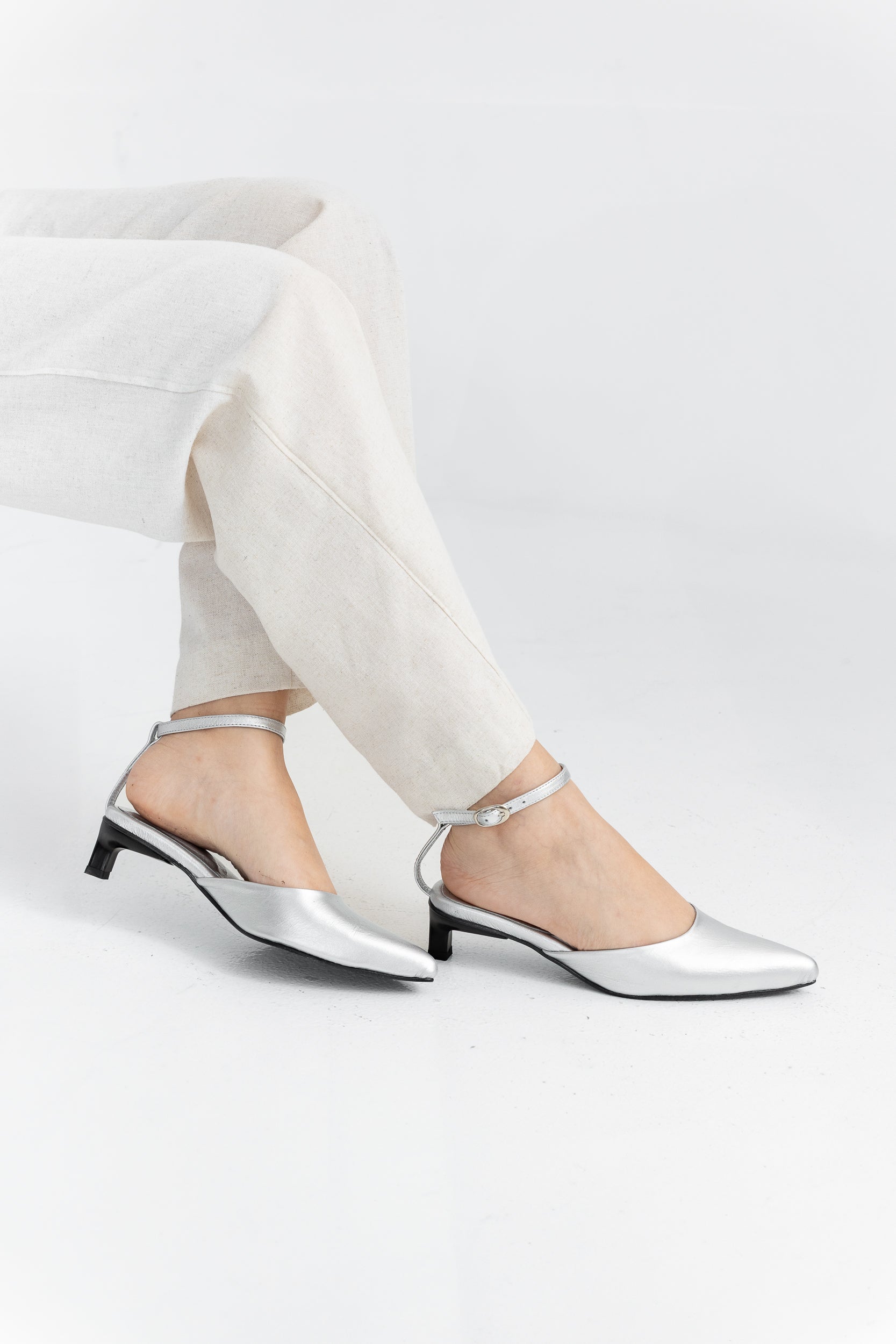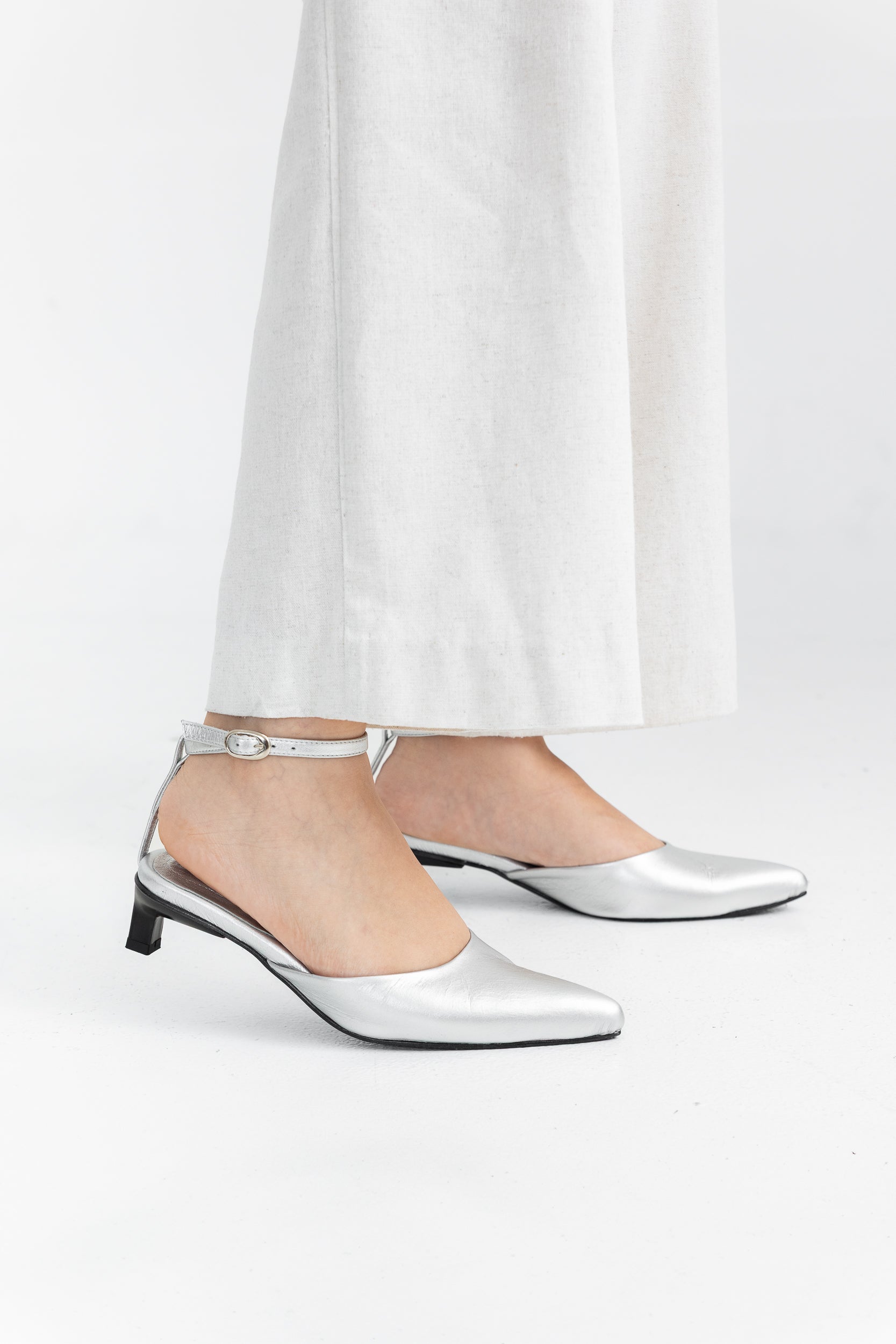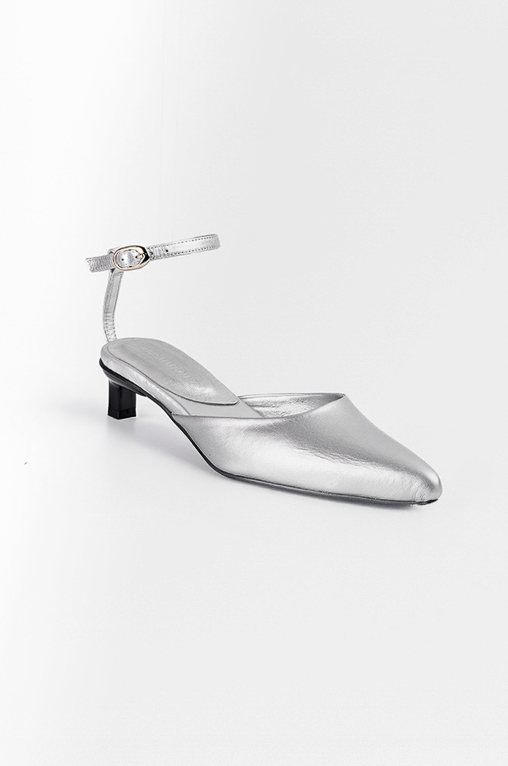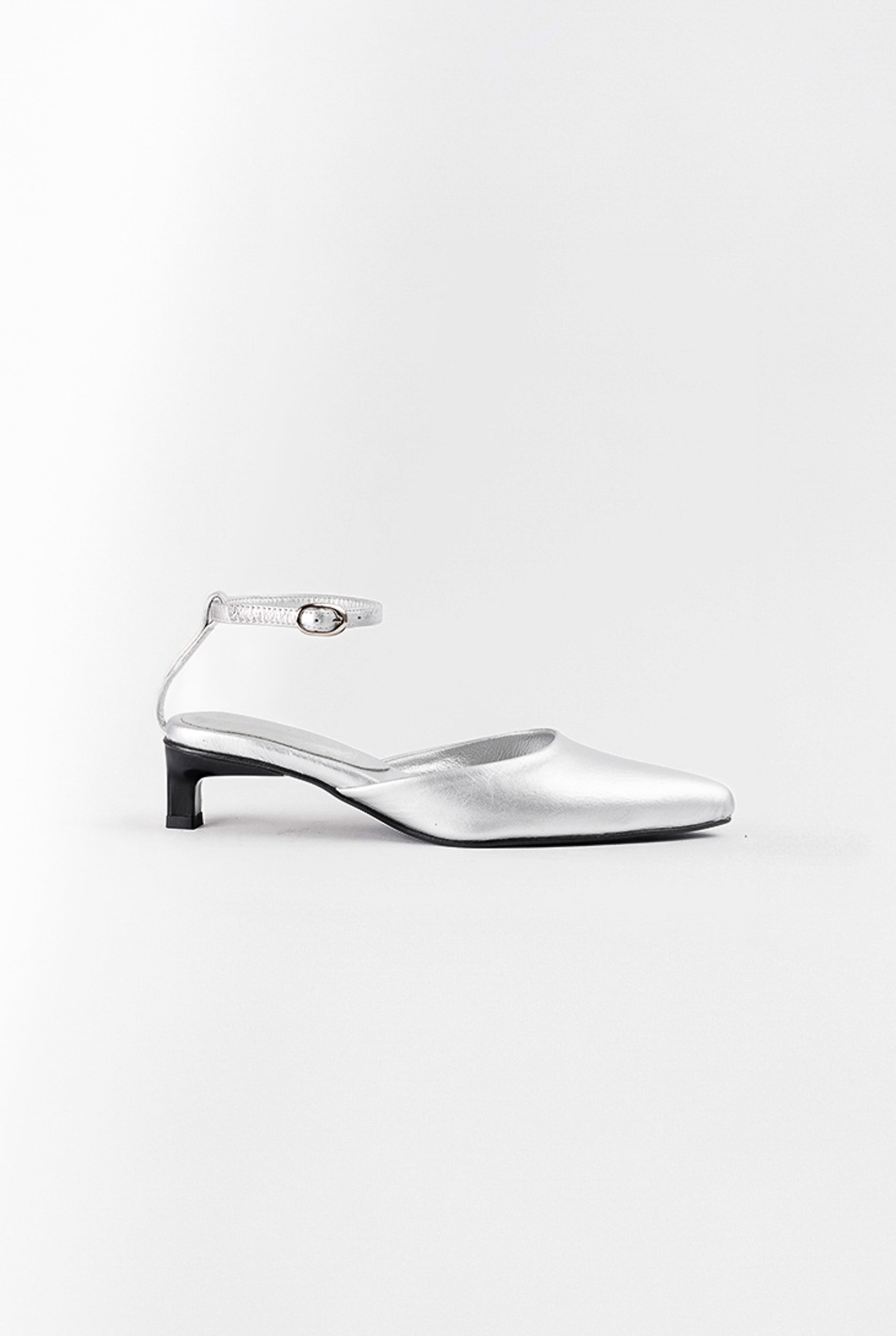 Tacón puntiagudo en altura de 35 milímetros, huella Santa Catalina, pulsera ajustable con hebilla