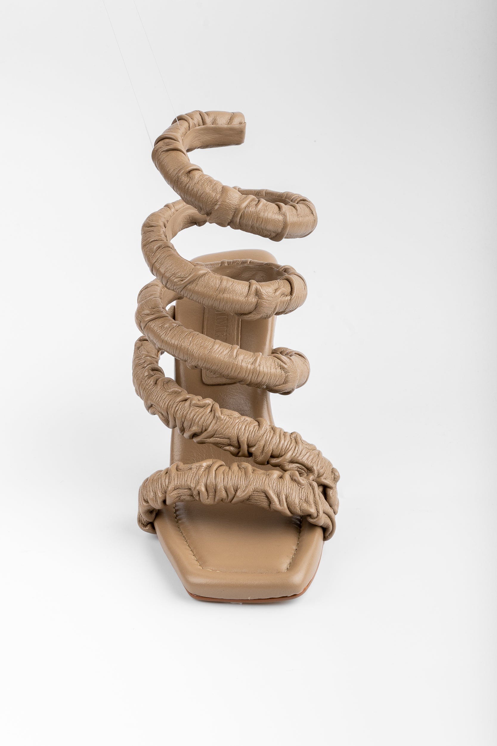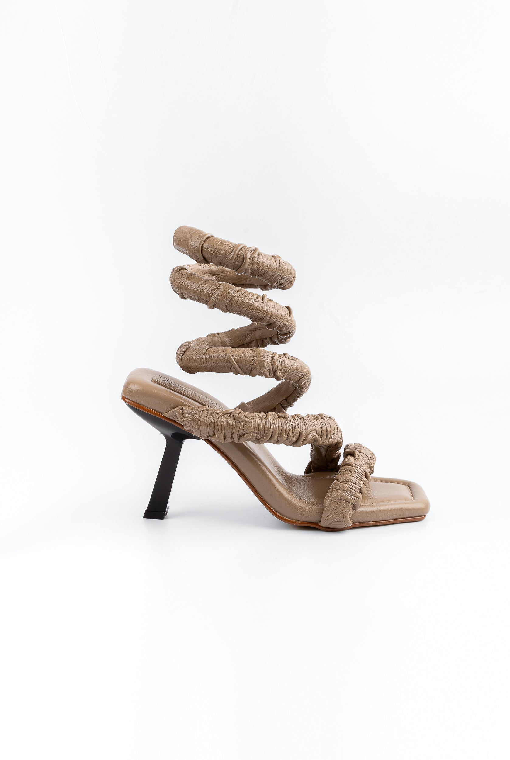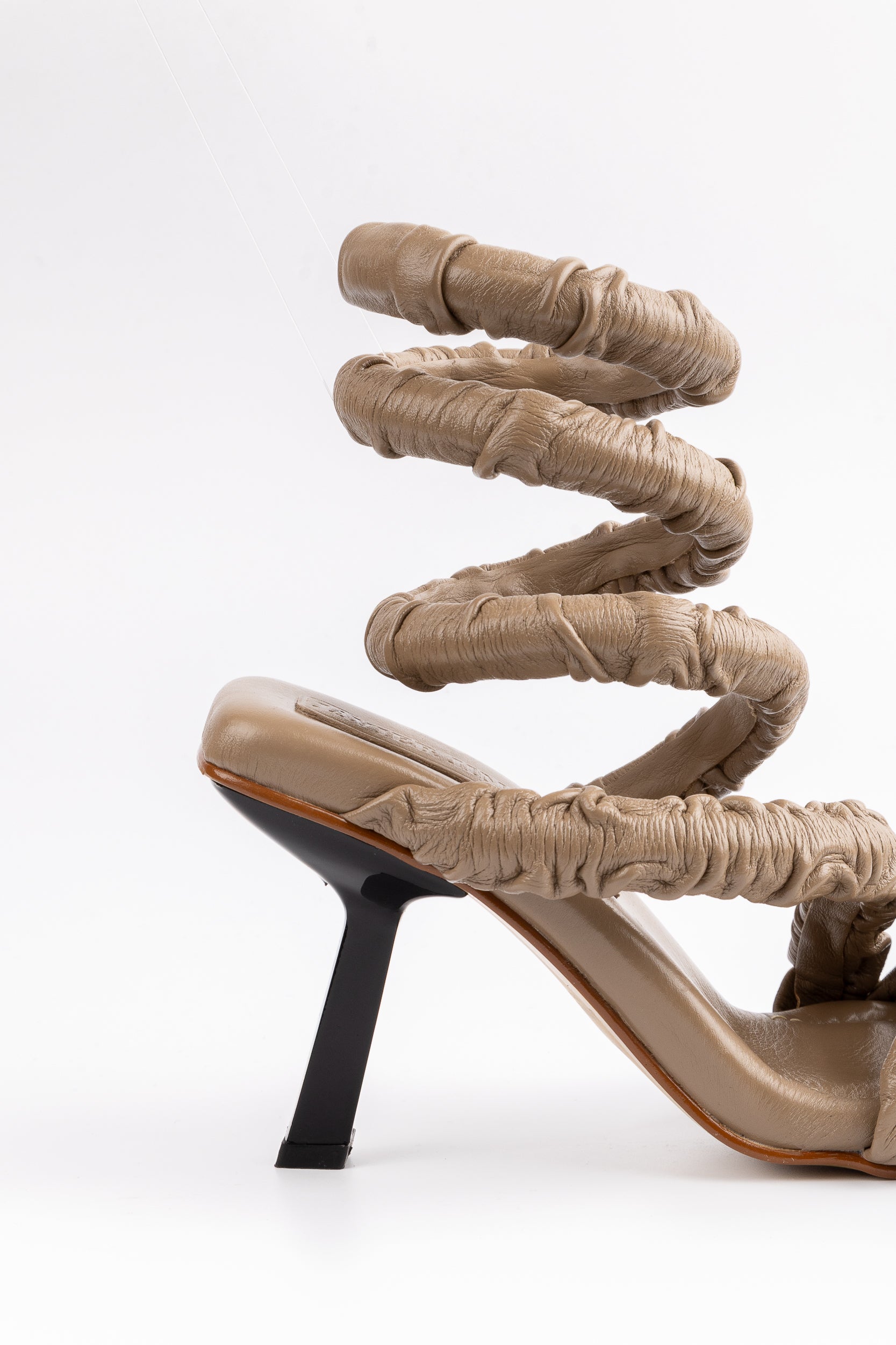 Rubber eleva la técnica Rugery a una versión encauchada y sofisticada, con un efecto de onda natural y fluida. Su tacón icónico de 75 mm en negro aporta contraste y carácter, mientras la plantilla abullonada extra confort, con costura decorativa y funcional, asegura comodidad total. Capelladas en piel suave y caucho a tensión crean una textura arrugada con nuestro espiral distintivo, dando vida a un diseño renovado y contemporáneo.